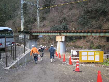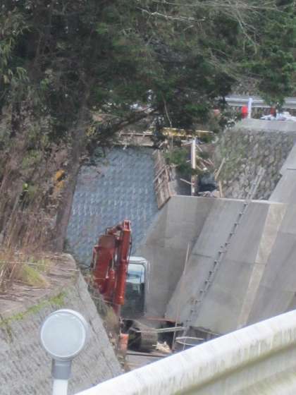 児童の登校にご配慮をいただきながら,河川修復工事が始まりました。