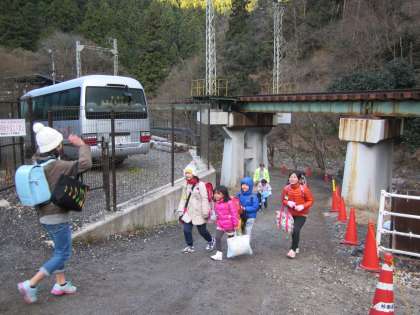 今朝は一段と冷え込んだ中,元気に登校しています。