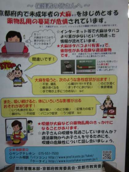 薬物について,関係課からチラシが送付されてきました。またご覧いただきますようお願いいたします。