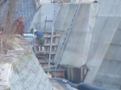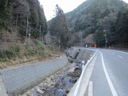 トントントン…,工事の音が鞍馬川から聞こえてきます。