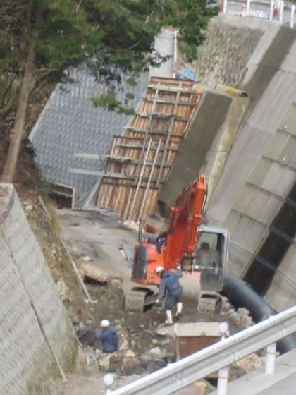 今日の河川工事では,『生コン車』が登場していました。