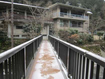 横断歩道橋の雪を,用務員さんに融かしてもらっています。
