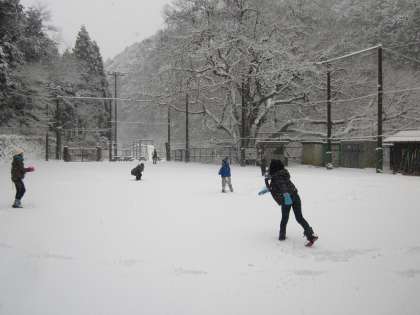 朝遊びは今年度初めての雪合戦です。