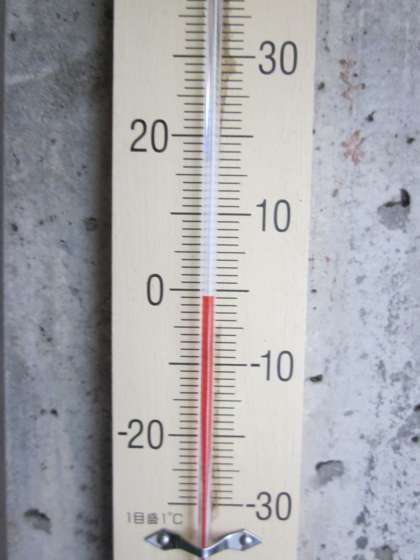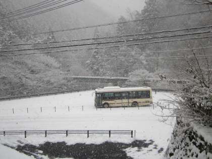 早朝から気温がなかなか上がりません。雪が降り続いています。学校前を通過するバスは,チェーンを装着していました。