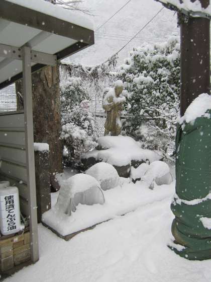 二宮翁前のバラ園です。寒さは少しましかな。