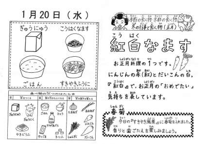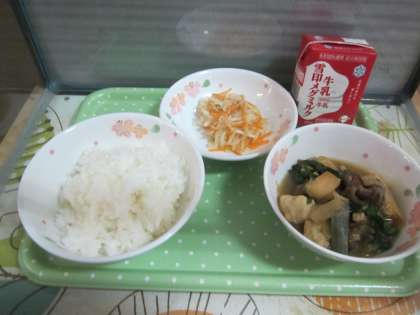 今日の給食は,ごはん・牛乳・すき焼き風煮・紅白なますです。