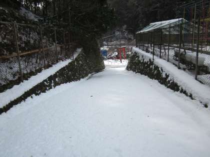 湿った雪が少しずつ,融けてきだしました。夕方には凍ってバリバリかもしれませんね。