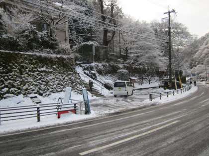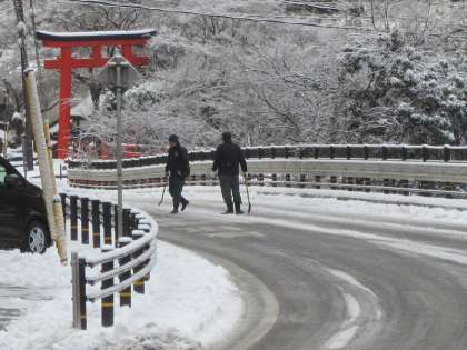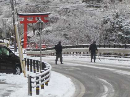 鞍馬街道にも,凍結防止剤を散布しました。
