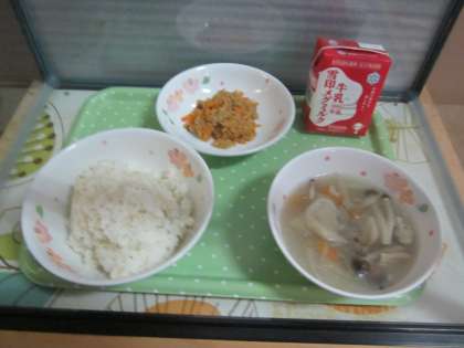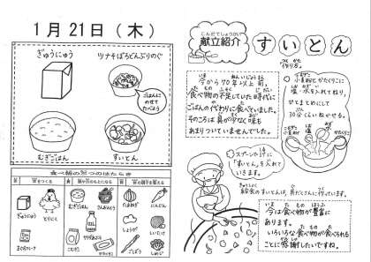 今日の給食は『すいとん』です。昔のお話も読んでほしいですね。
