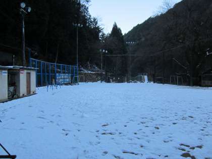 運動場も凍っています。踏みしめると,バリバリと音がします。