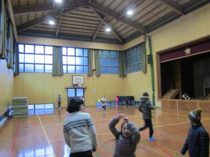 教室で過ごす児童と,体育館で遊ぶ児童に別れました。運動場に出る児童はいませんでいた。