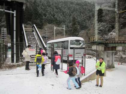 雪で作った椅子のことを尋ねる児童がいました。融けていないか気になったようです。