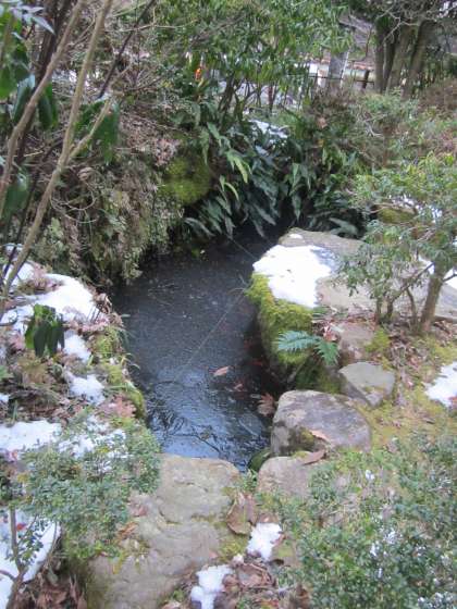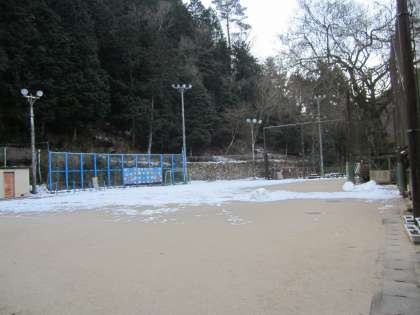 運動場の雪も半分くらい融けました。池の氷は厚そうに見えます。