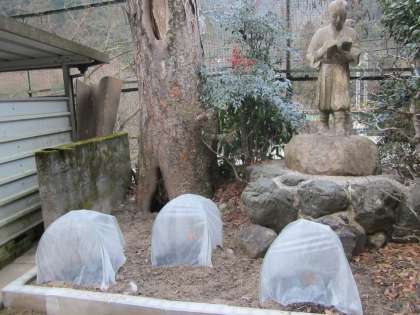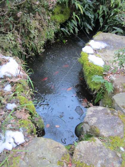 マイナス1度,池は凍っています。バラ園はまだまだ寒そうです。