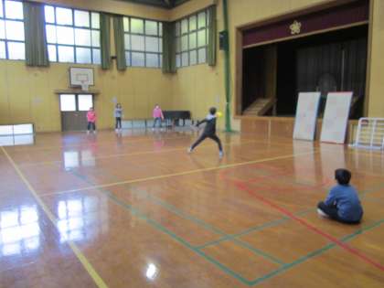5年生がドッジボールをしています。なかなかスピーディーです。