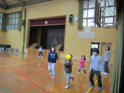 運動場は雪解けの水たまりだらけです。今週の遊びは,ずっと体育館のようです。