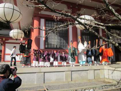 陰陽師・方相氏(ほうそうし)・殿上人を先頭に,本殿の周りを駆け巡ります。
