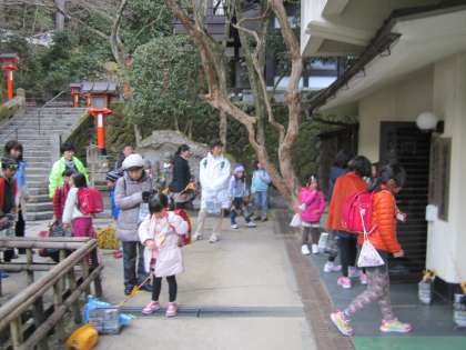 帰りに,鞍馬山保育園様にお礼を言いました。荷物を預かってくださらなかったら,児童は登れなかったかもしれません。