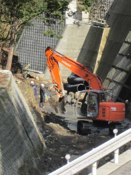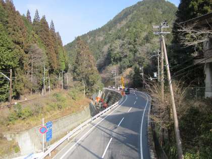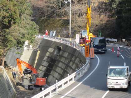 つかの間の晴れ間です。学校北側でも『片側交互通行』です。