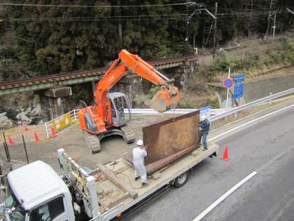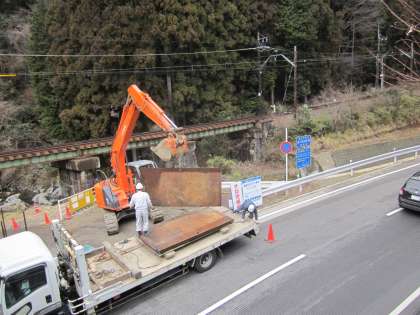 先週の工事で,ちょうど鉄板を撤去する場面を見ました。その時の画像です。