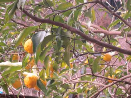 梅の木の横には,立派な柚子が実を付けていました。