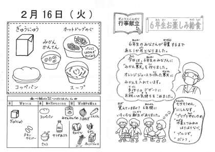 6年生は,ご覧のようなメニューとなっています。