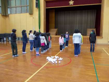 今日の「くらまタイム」は4年生が司会進行を務めました。最初に整列して,ゲームのルールを説明して,チーム分けを発表します。