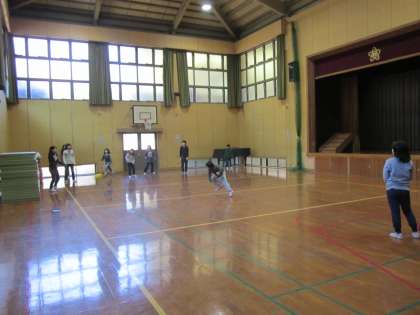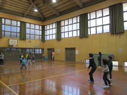 まだ投げていない人がいる間は,(低学年を中心に)ボールを回してあげています。