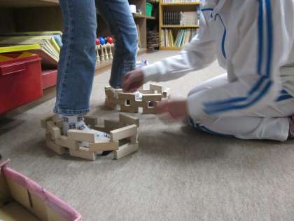 課題をしたり,積み木で遊んだりしていました。