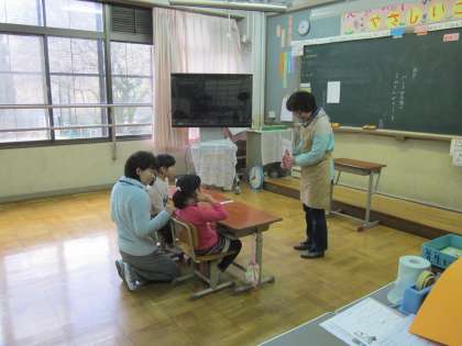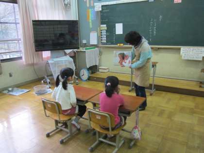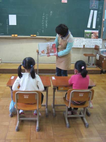 今週は1年生の教室での読み聞かせです。『まゆとおに』のお話を,真剣に聴いていました。ハッピーエンドのお話で,ホッとしました。