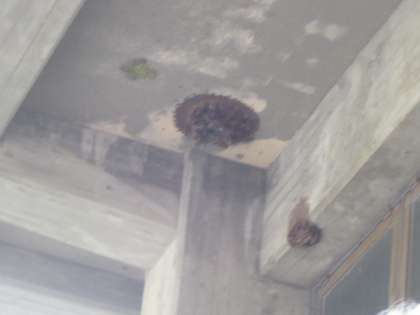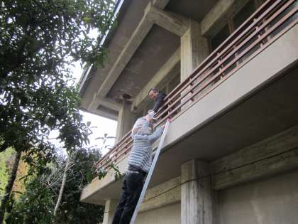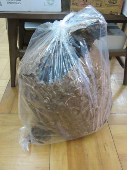 朝から保健所に連絡・確認し,学校職員でスズメ蜂の巣(体育館裏)を除去することにしました。