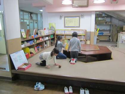 お部屋で過ごしたり,運動場で遊んだりしています。