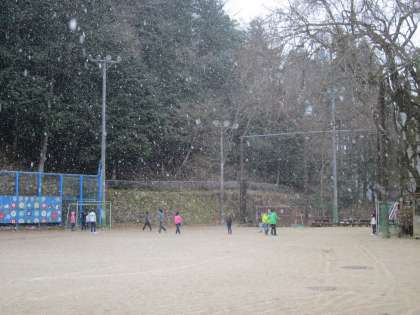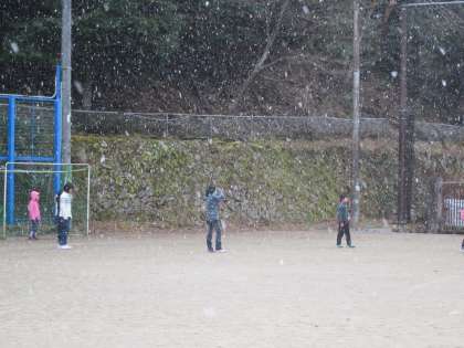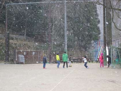 雪の中のサッカーです。風邪をひかないようにしましょう。