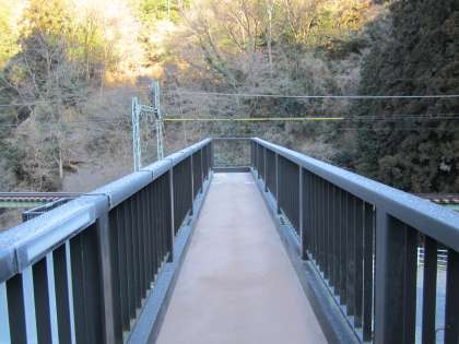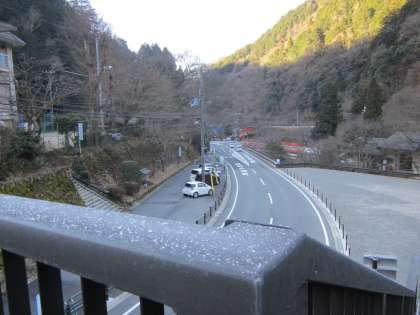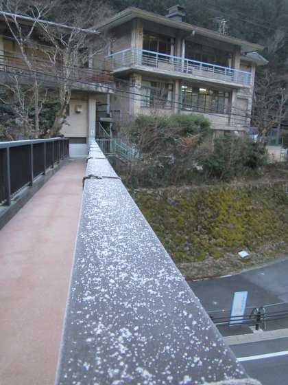 歩道橋に霜が降りています。雪の粒もありました。
