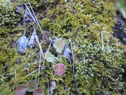 石段付近にも霜が降りています。所々白いです。