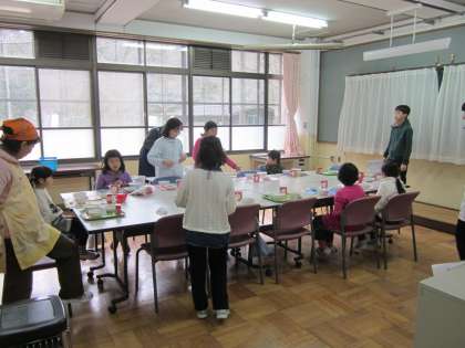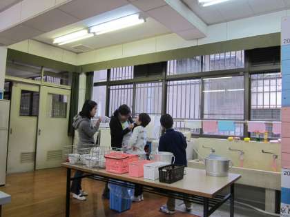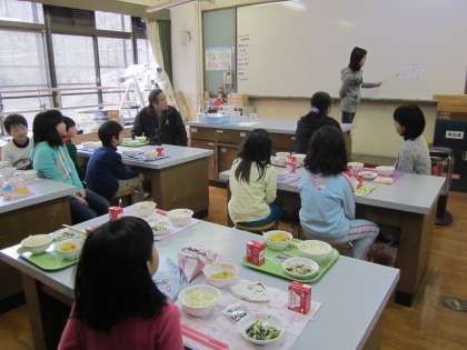 児童も縦割りで,教職員と一緒に食べました。楽しいひと時でした。