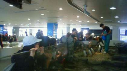 ペンギンも触っています。