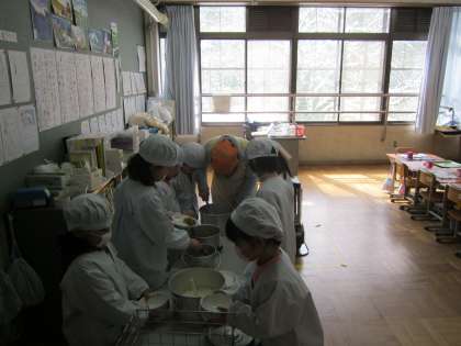 今日の給食は,ごはん・牛乳・鰆の竜田揚げ・野菜のきんぴら・豚汁です。よく噛んでいただきましょう。
