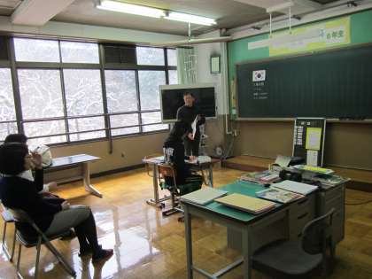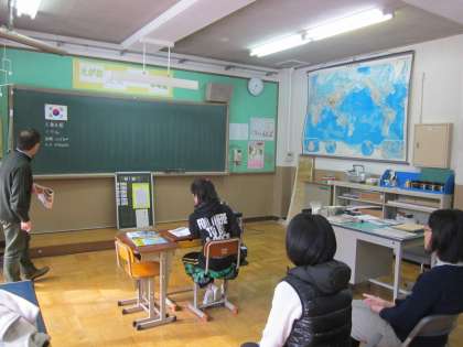 洛北中学校の先生方が,鞍馬校の様子を参観に来てくださっています。主に6年生の学習の様子を参観されています。(お隣の国『大韓民国』について学習しています。)