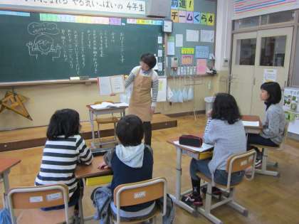 今朝の読み聞かせは,4年生教室で,『絵くんとことばくん』でした。