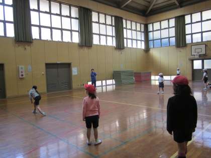 低学年運動部活はドッジボールでした。自分からボールに向かっていくことも必要ですね。