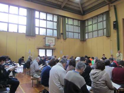 DVD視聴後,「土砂災害防止法」「鞍馬学区基礎調査結果」「警戒避難体制の構築」等々,行政側から説明がありました。また,鞍馬学区民の皆様からの質疑応答もありました。