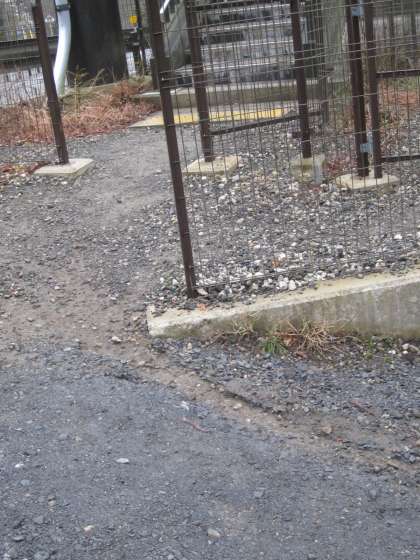 歩道橋下の小道が,雨水の影響で少しえぐれていました。