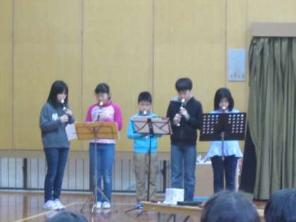 今日の3校時に「6年生を送る会」がありました。まずは5年生の演奏に合わせて,6年生が入場します。