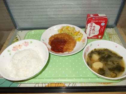 豚ロース60グラムは満足感いっぱいです。高学年の児童に聞いてみました。