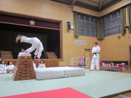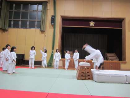 高所から落ちても,『自分の頭は自分で守る』練習です。