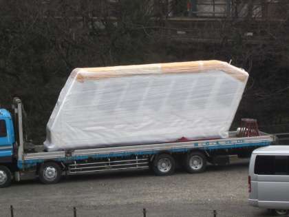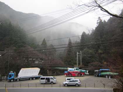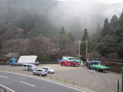 鞍馬山ケーブル工事の関連作業が,学校前で行われています。新しいケーブルカー,楽しみですね。