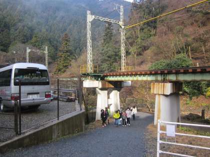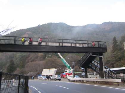 歩道橋から作業の様子を眺めています。