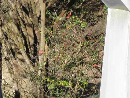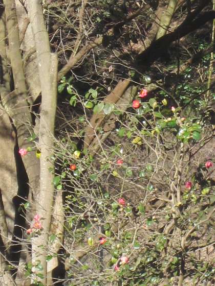 通学路横の(叡電陸橋下)の椿が咲いています。