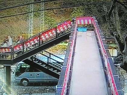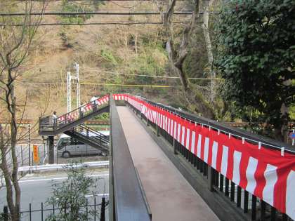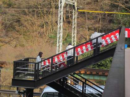 卒業式準備の職員作業は,歩道橋付近でも続きます。